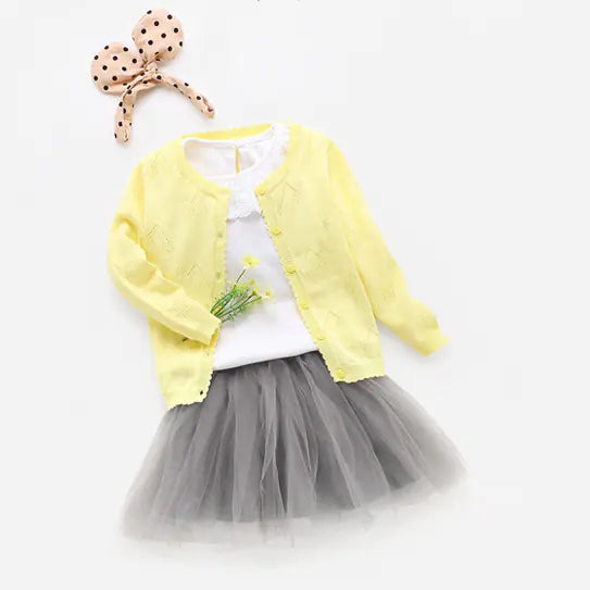 Med en unik diagonal knytstängning och en diagonalknäppt enkelknäppt design ser denna kofta inte bara bra ut utan är också lätt att bära. Det enzymtvättade tyget säkerställer en mjuk känsla mot din bebis hud, vilket gör den lämplig för känslig hud.